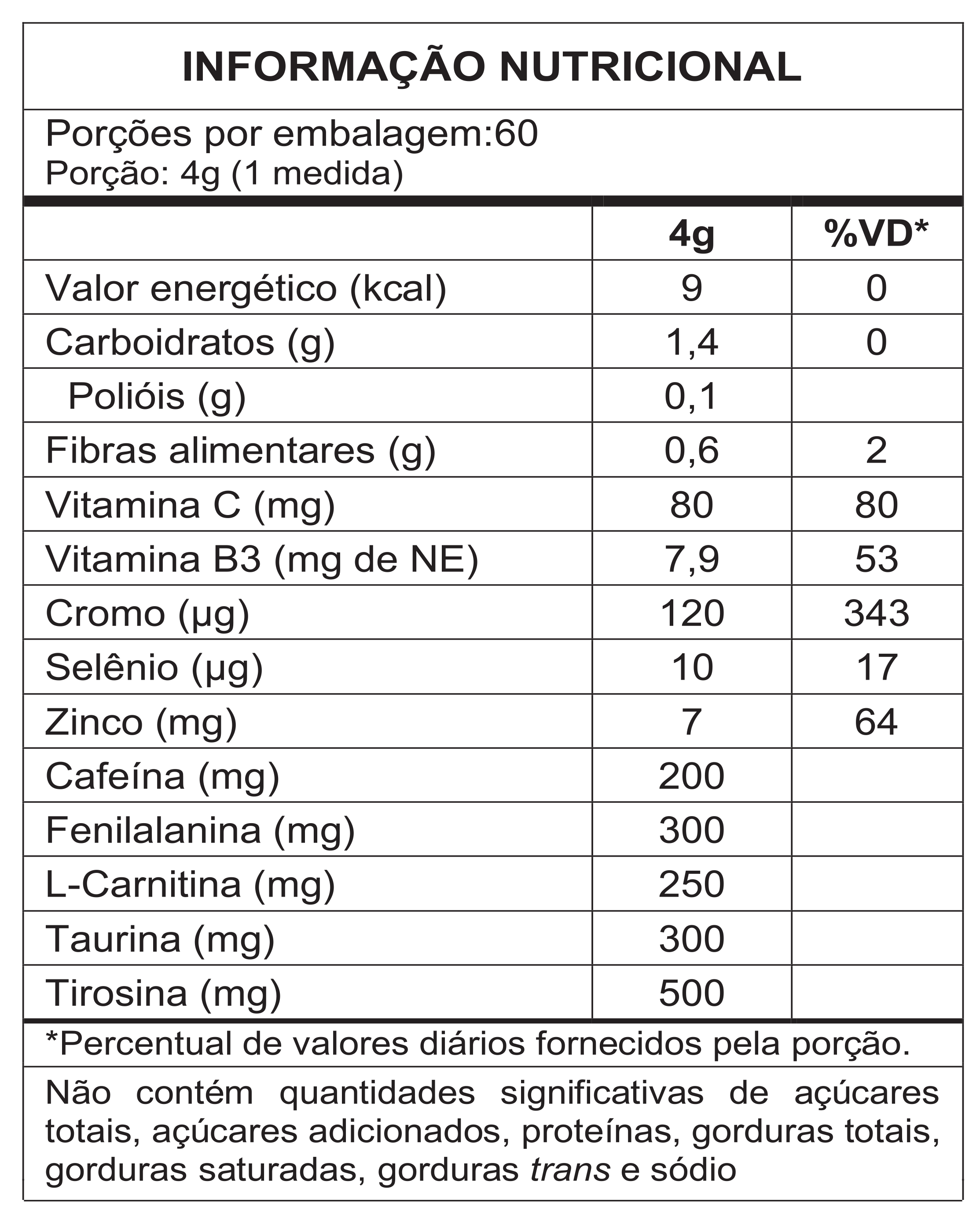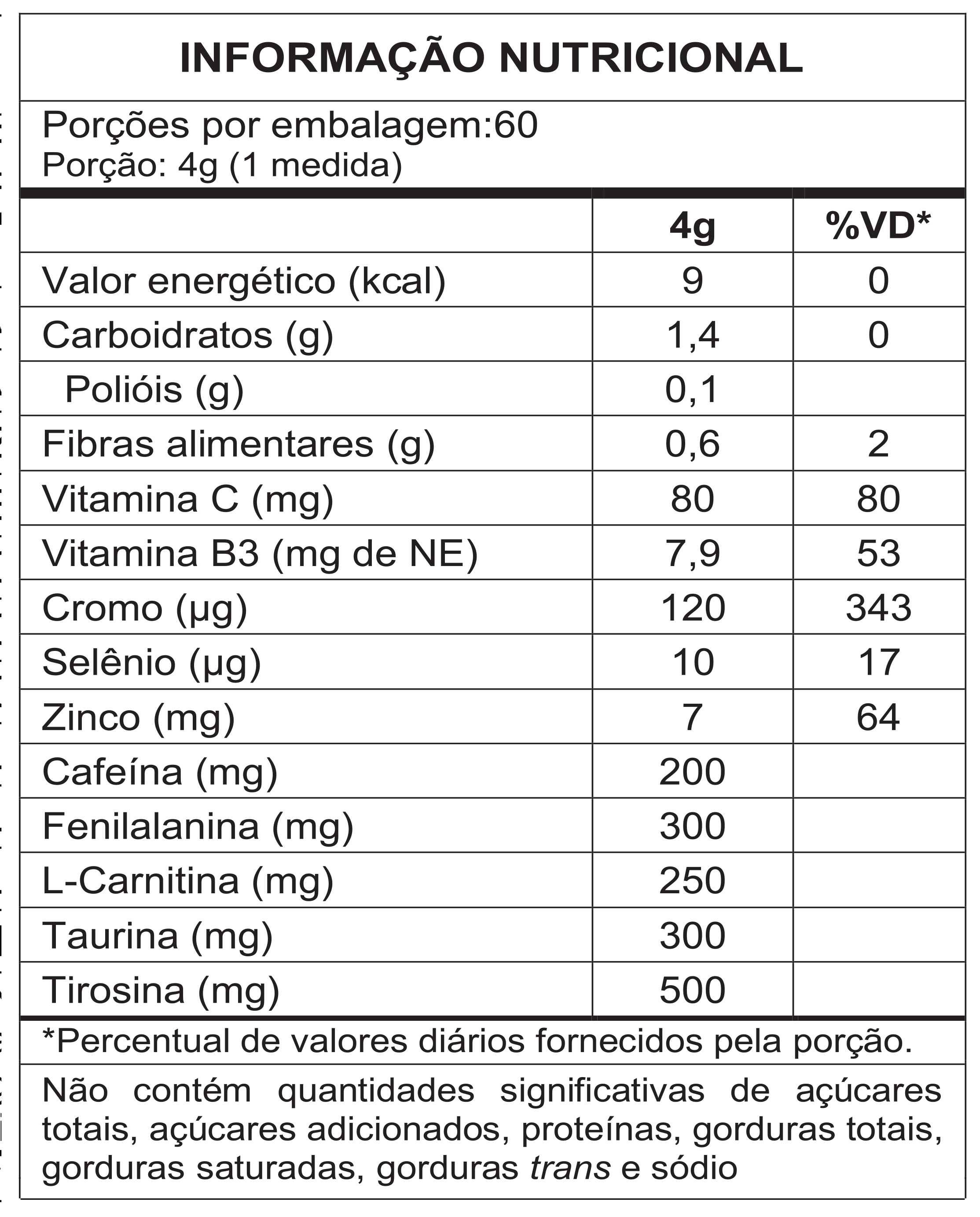 Aviso: Este produto contém cafeína e outros estimulantes. Não consuma em conjunto com outras fontes de cafeína. Consulte um profissional de saúde antes de usar este produto se você tiver alguma condição médica ou estiver tomando medicamentos. Mantenha fora do alcance de crianças.